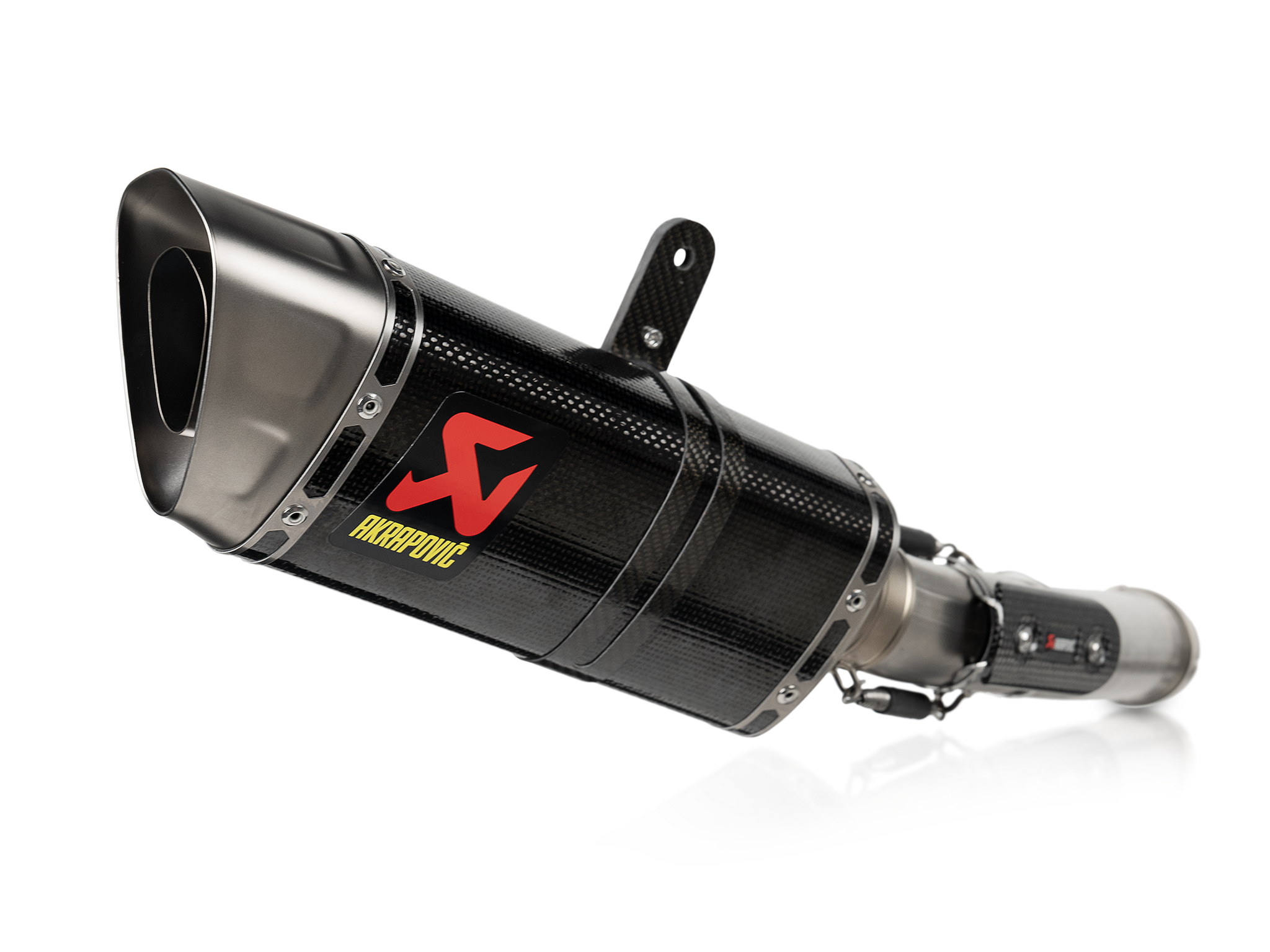 Constructed from race-proven materials: carbon fibre for the muffler sleeve and titanium for the end cap and link pipe has a smaller sportier appearance and that exhilarating Akrapovič sound.