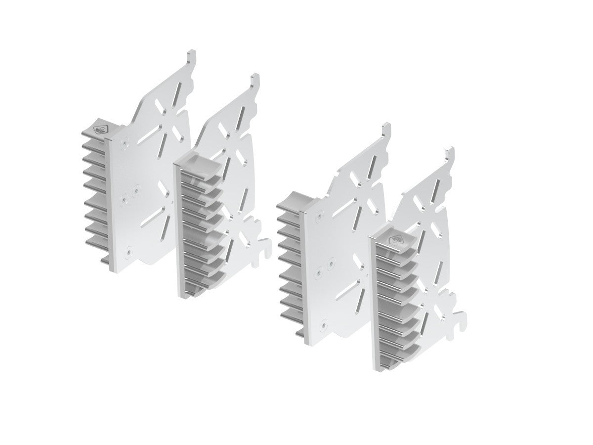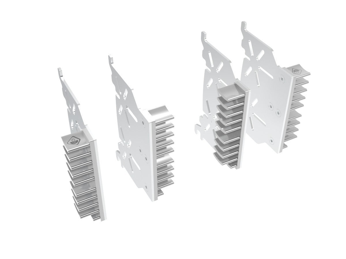 The main body is made of a special thermal steel with a high degree of heat conductivity. The material is first laser cut and then CNC machined in our workshops, the slots have two purposes, the first to reduce the contact surface, the second to release the hot air formed inside the brake piston cavity by reducing the hot chamber effect, and the propagation of heat in the piston and oil. The main body of the steel sink is connected to a light alloy heatsink made of a special aluminum with high thermal conductivity, which has the task of assisting the process of heat dissipation.