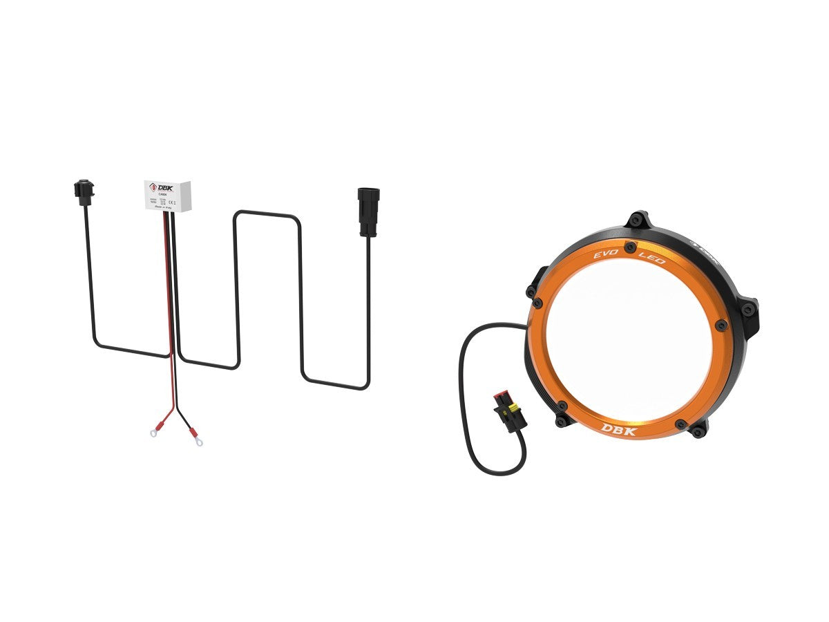 LED outer ring kit, complete with wiring, automatic reset fuse, and a dedicated switch for turning the light on and off. Designed for easy installation and maximum reliability.