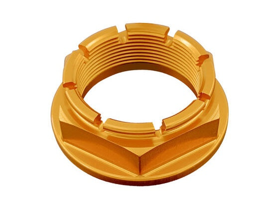 For each nut, all the necessary information is provided so that you can purchase the product suited to your motorcycle model. In this case the nut measures M38X1.5; It has a diameter of 55 mm. and a height of 19 mm. The diameter of the hexagon measures 46 mm. and the maximum closure allowed is Nm 210 (Newton per metre).