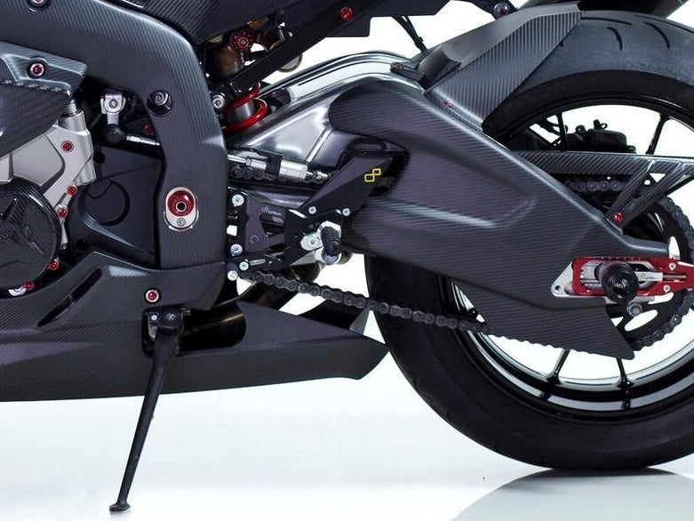 They are adjustable in height and backwards, offering multiple footpeg positions, which can be implemented with the aid of optional footpeg holders. Up to 3 high-quality bearings are integrated into the levers to withstand the most extreme stresses on the road, but especially on the track. The rearsets can be customized thanks to a wide range of accessories and spare parts.