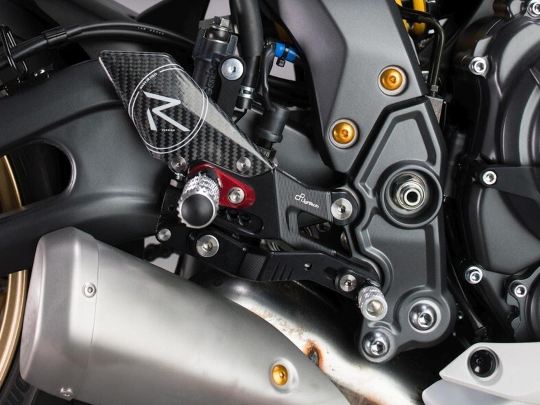 They are adjustable in height and backwards, offering multiple footpeg positions, which can be implemented with the aid of optional footpeg holders. Up to 3 high-quality bearings are integrated into the levers to withstand the most extreme stresses on the road, but especially on the track.